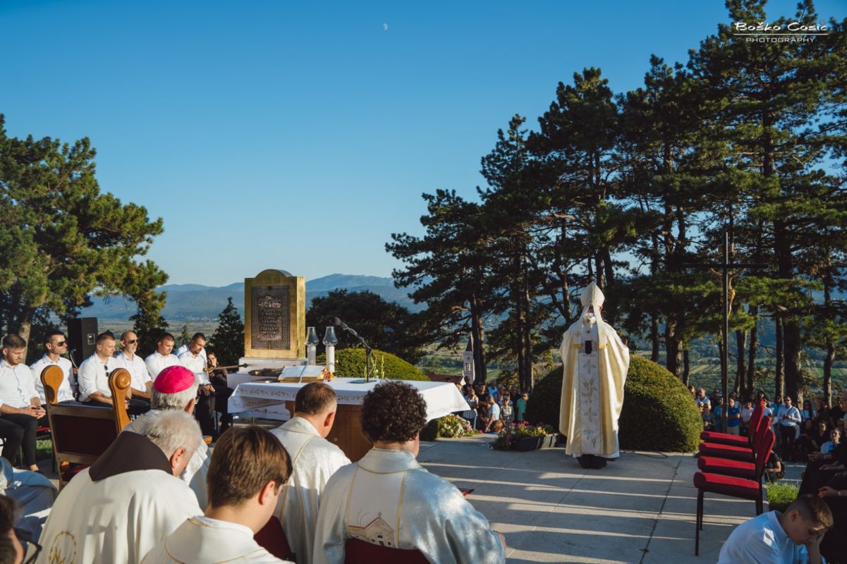 Nadbiskup Križić u propovijedi je govorio o duhovnoj dubini i značenju blagdana Porcijunkule, ističući kako je on nastao u franjevačkom duhu i kako podsjeća na radikalno obraćenje sv. Franje u crkvici Gospe od Anđela u Asizu. „Franjo je bez rezervi prihvatio Isusove upute i opredijelio se za radikalno materijalno siromaštvo“, rekao je nadbiskup, dodajući kako Franjo nije prezirao materijalna dobra, nego je u Isusu pronašao istinsko bogatstvo i sigurnost. Istaknuo je zatim i Marijin primjer pojašnjavajući kako je ona „prvo vjerom začela u srcu, a onda u utrobi“. Time je naglasio važnost prihvaćanja Božje riječi u svakodnevnom životu. „Marija je blažena zato što je povjerovala. Samo vjera može donijeti Boga svijetu, pa i u sredine gdje je zlo uzelo velikog maha“, poručio je mons. Križić. Nadbiskup je nadalje govorio o Marijinu hodu vjere, naglasivši kako ona, iako nije razumjela sve što joj je Bog objavio, nije tražila dodatna objašnjenja, nego se potpuno prepustila Božjoj volji. Pojasnivši, na tragu sv. Augustina, kako je razumijevanje plod vjere, a ne obrnuto, propovjednik je ustvrdio da je Marija primjer one koja vjeruje i u trenucima tame i trpljenja, pa i podno križa gdje „stajala“, ostajući ustrajna i pouzdana u Boga. Tako Gospa postaje uzor svakom vjerniku: da poput nje prihvati Božju riječ, živi je i donosi drugima.