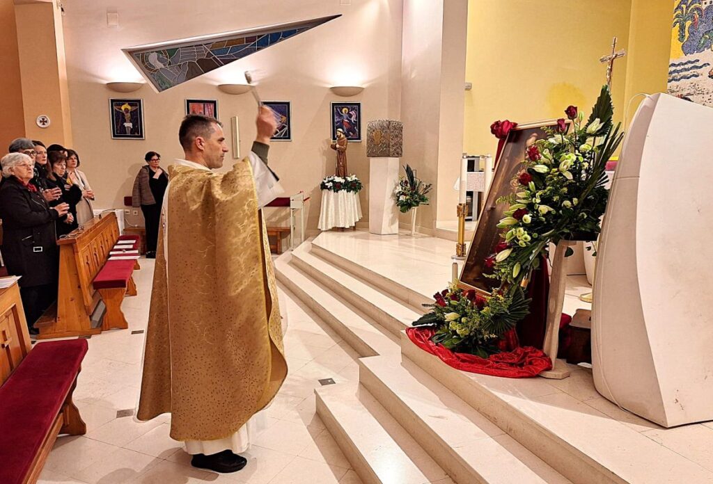 Neposredno prije početka svete mise, koja je u 18 sati slavljena u crkvi sv. Franje Asiškog, župnik fra Denis Šimunović blagoslovio je novu sliku blaženog Alojzija Stepinca. Tim je činom slika darovana vjernicima na štovanje te kao trajni spomen ovoga događaja.