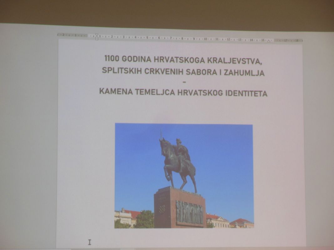 Dr. Đurasović se pozvao i na izvore prema kojima je pokrštavanje Hrvata započelo između 640. i 642. godine. Spomenuo je i Tomu Arhiđakona, koji navodi da je većina pučanstva tada već bila pokrštena. Predavač je potom govorio o odnosu Crkve i hrvatskih vladara, istaknuvši Trpimira, Domagoja, Branimira, Tomislava i druge, a osobito kralja Zvonimira.