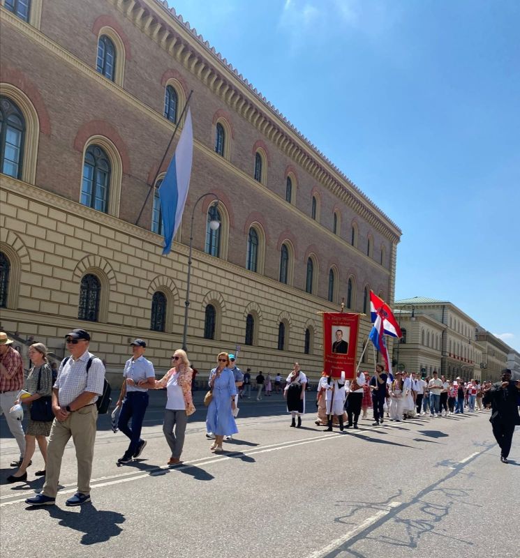 Nakon svečanoga euharistijskog slavlja uslijedila je procesija s Presvetim od Marienplatza do „Vrata pobjede“ u Ludwigstrasse. Među dvadesetak stranih katoličkih misija najbrojniju skupinu činili su hrvatski vjernici, predvođeni župnikom fra Petrom Klapežom, uz mlade folkloraše iz Hrvatske katoličke misije koji su nosili hrvatska nacionalna obilježja sa stijegom svoga nebeskog zaštitnika blaženog Alojzija Stepinca.
