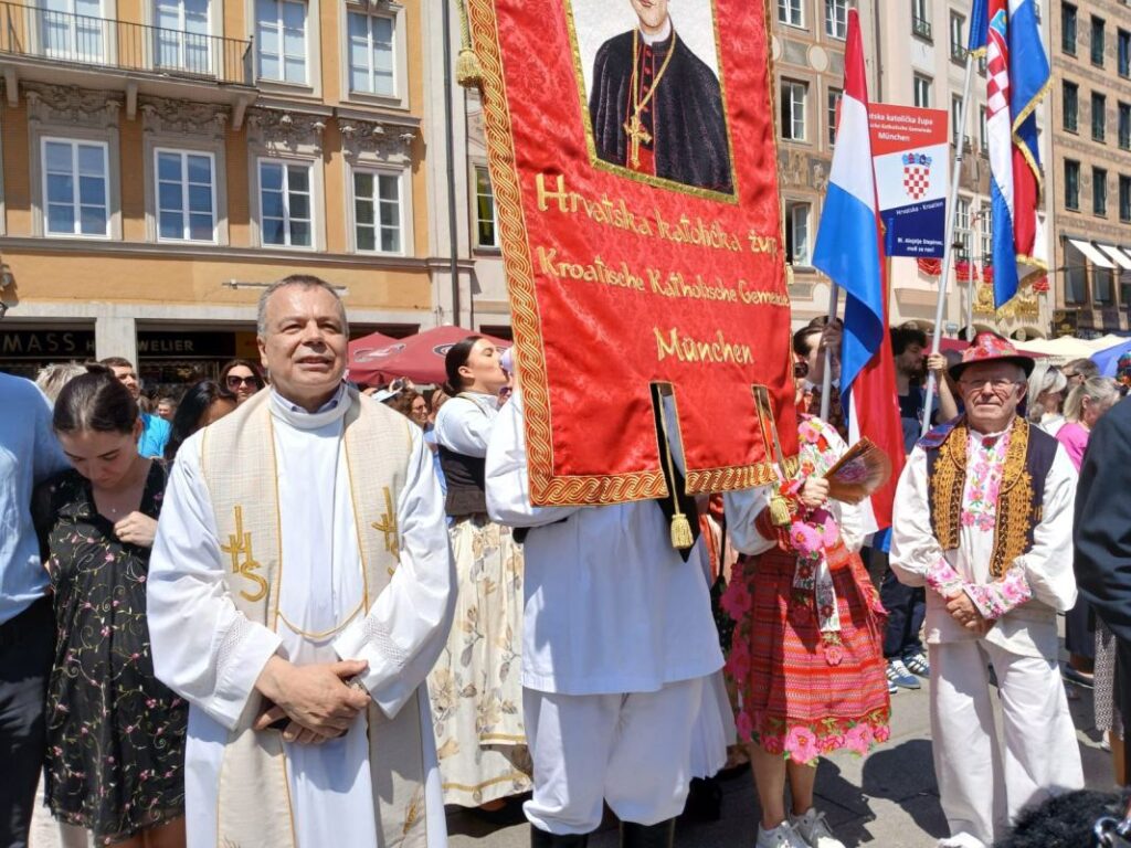 Tako je bilo i ove godine: tijelovska misa i procesija kroz središte grada protekle su u svečanom ozračju vjere i zajedništva. U koloritu raznolikih narodnih nošnji posebno su se isticale bogate i šarolike hrvatske narodne nošnje, hrvatske zastave te zastava blaženog Alojzija Stepinca, nebeskog zaštitnika hrvatske zajednice.