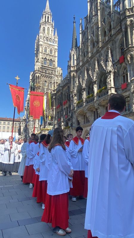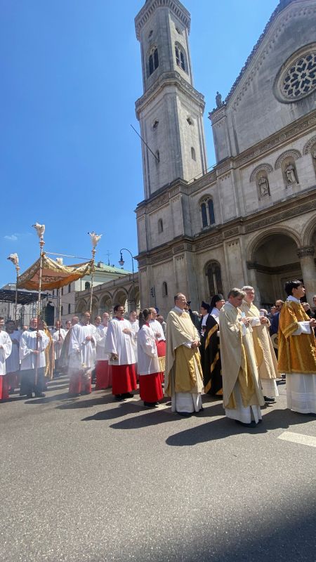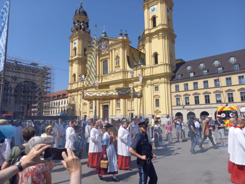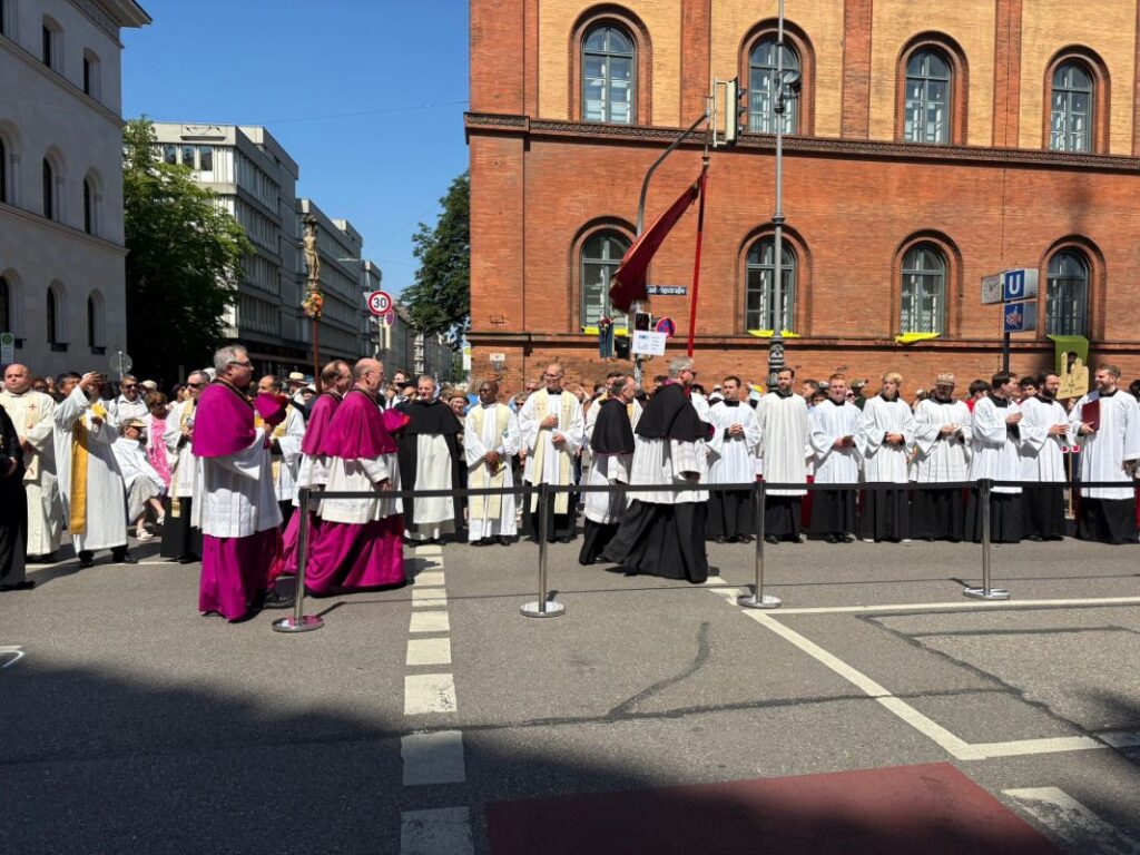 U četvrtak, 19. lipnja 2025., na središnjem gradskom trgu Marienplatz svečano je proslavljena svetkovina Tijelova, koja je i ove godine okupila više tisuća vjernika različitih nacionalnosti. Središnje euharistijsko slavlje predvodio je nadbiskup Münchena i Freisinga kardinal Reinhard Marx.