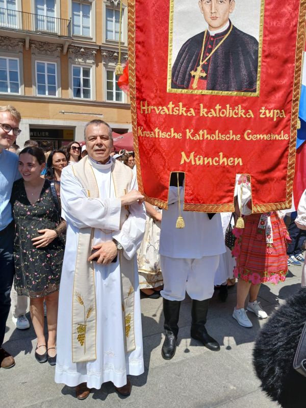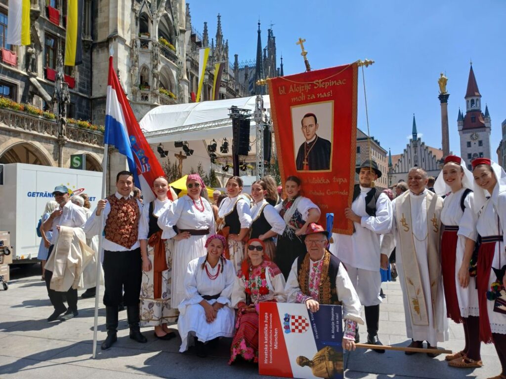 U veličanstvenom mnoštvu nacionalnih zajednica tradicionalno je sudjelovala i velika skupina hrvatskih vjernika predvođena župnikom fra Petrom Klapežom. Internacionalnost Katoličke Crkve posebno se očituje u ovoj njemačkoj biskupiji u kojoj živi oko 200 tisuća katolika iz različitih zemalja, trajno iseljenih ili na privremenom radu, među kojima su najbrojniji hrvatski vjernici. Hrvatski iseljenici žive u toj milijunskoj metropoli već 77 godina, i od samih početaka svoga privremenog, sad već i trajnog iseljeništva, pa sve do današnjih dana njegovali su duboku povezanost s vjerom i domovinom.